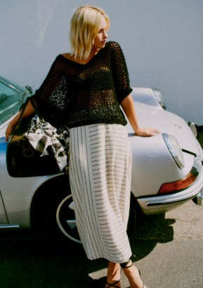 Tips: En tröja med oändliga möjligheter att matcha till. Ha den över olika modeller av linnen, toppar, skjortor och sätta till kjolar, byxor, shorts ja allt. Modellen här har kjolen ByJohanna till där kjolen har en svart rand i sig. Snyggt till både vardag och till fest.