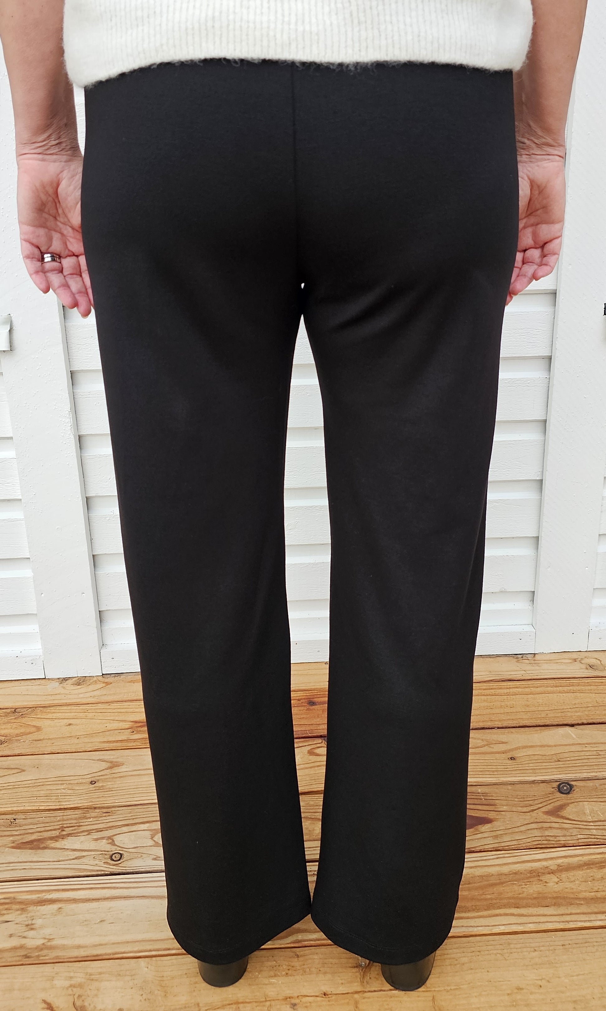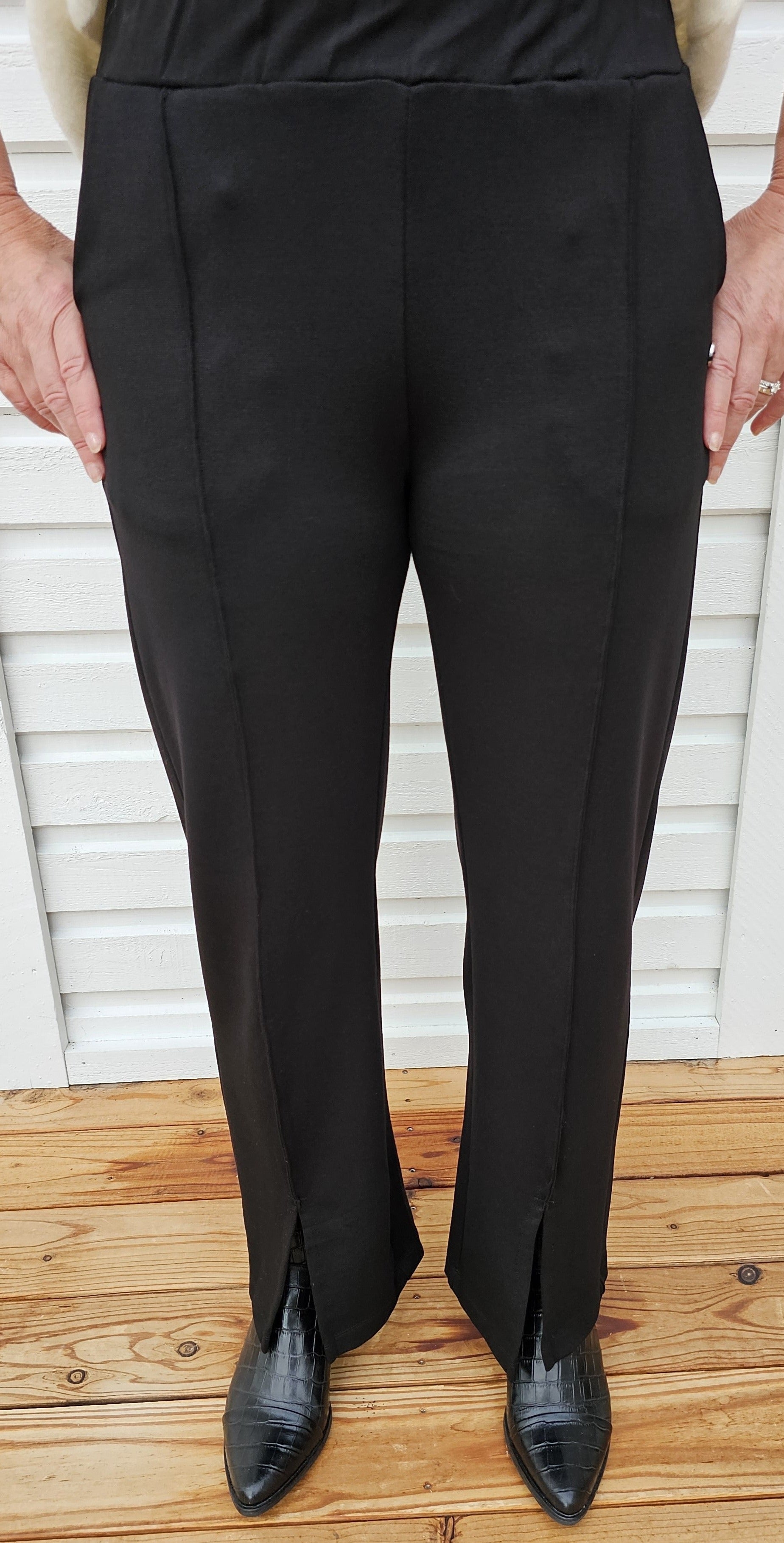 Produktbeskrivning: Mjuk stretchig byxa som är hett i höstens mode med slits fram nertill. Brett resår i midjan. Lika snyggt till vardags som till fest.