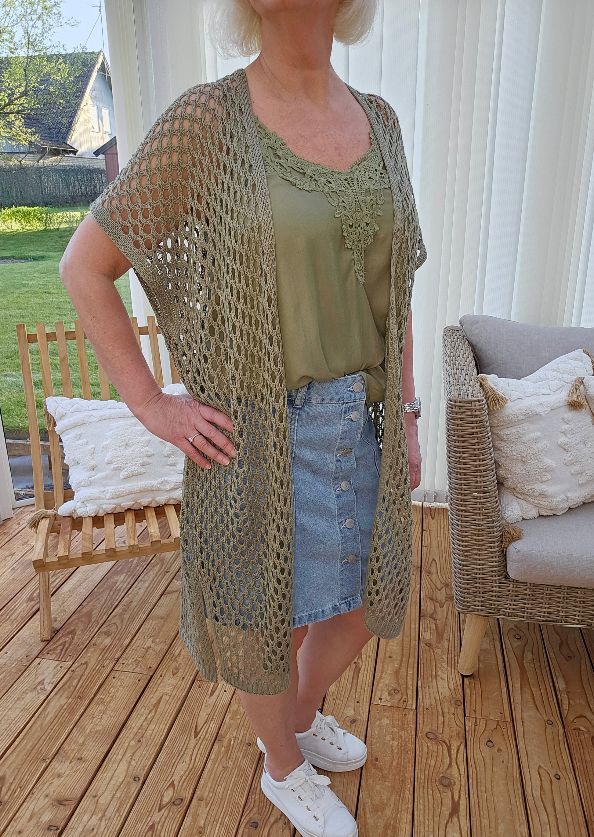 Tips: Jättesnyggt med att sätta till vår blå jeanskjol CR Kristy och Kaftanen Siri är i samma färg som detta linnet i olivgrönt om du vill matcha till.