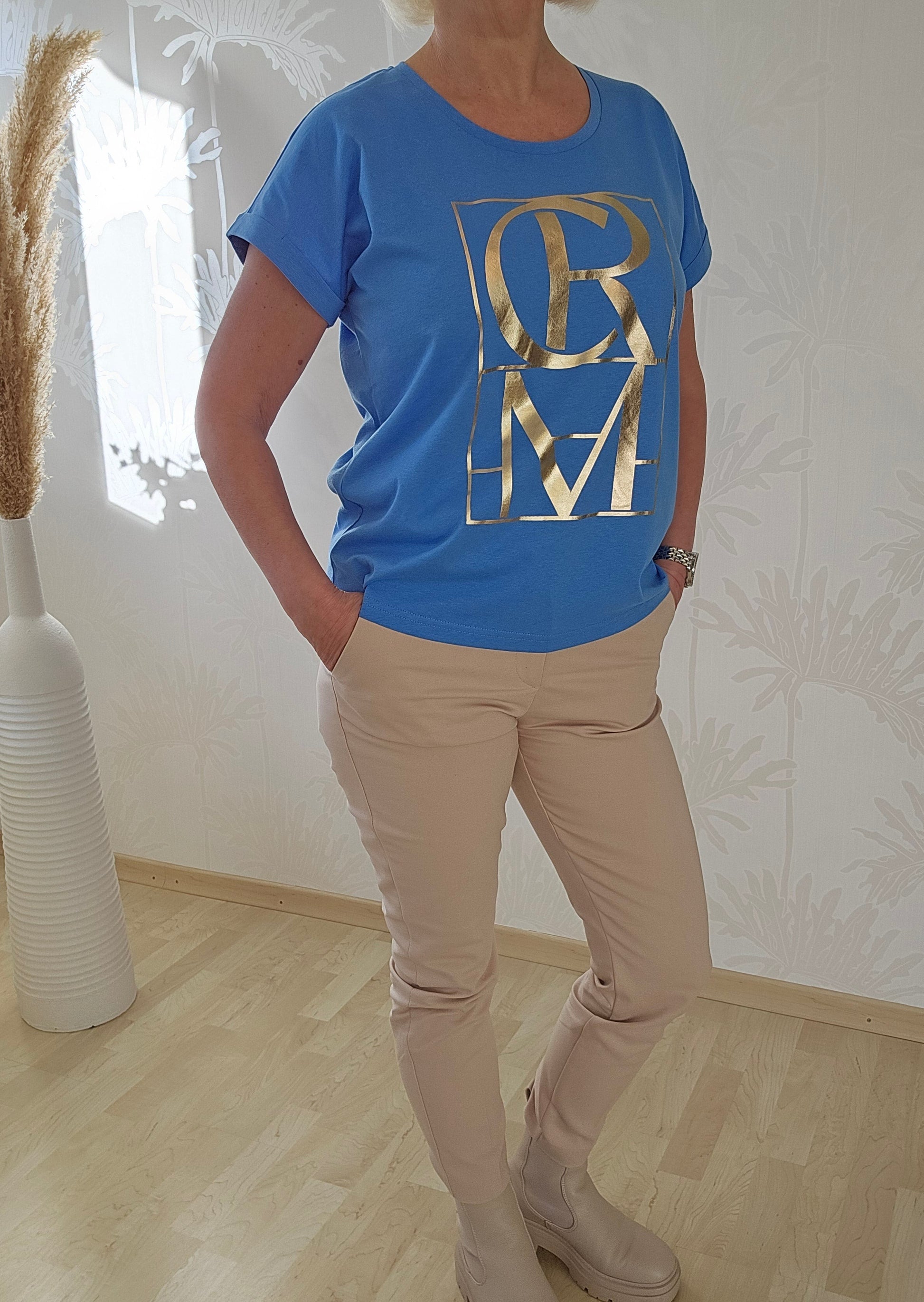 Produktbeskrivning: Mellanblå T-Shirt med guldigt tryck CREAM. Mjuk och skön i kvalitén