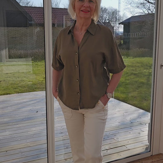 Produktbeskrivning: Kortärmad skjortblus med knappar fram. Skjortkrage.