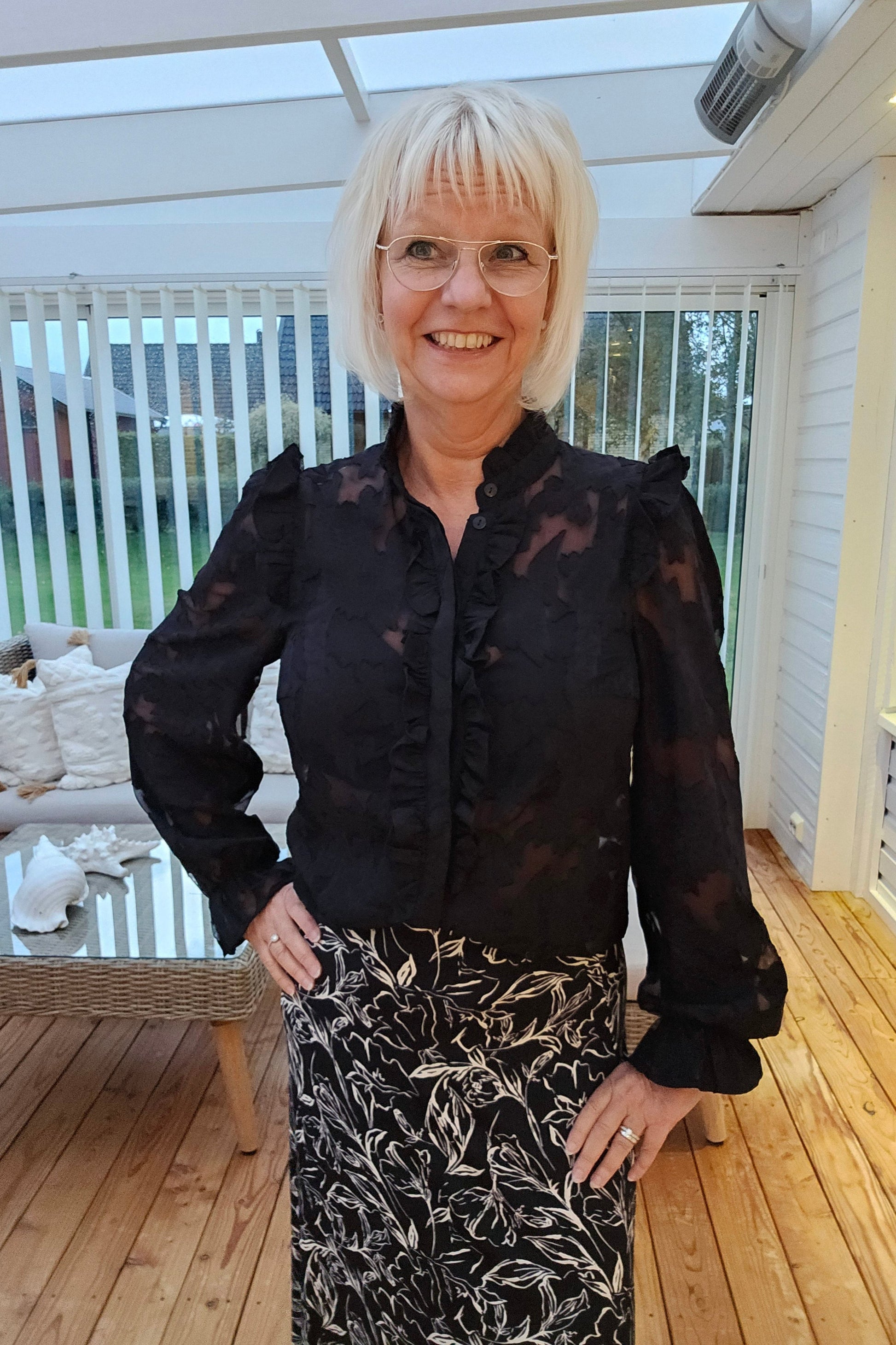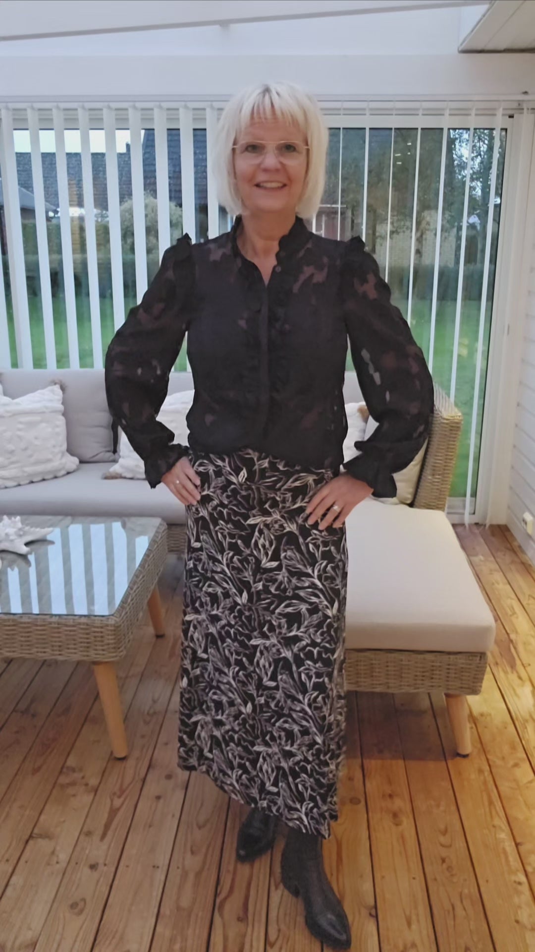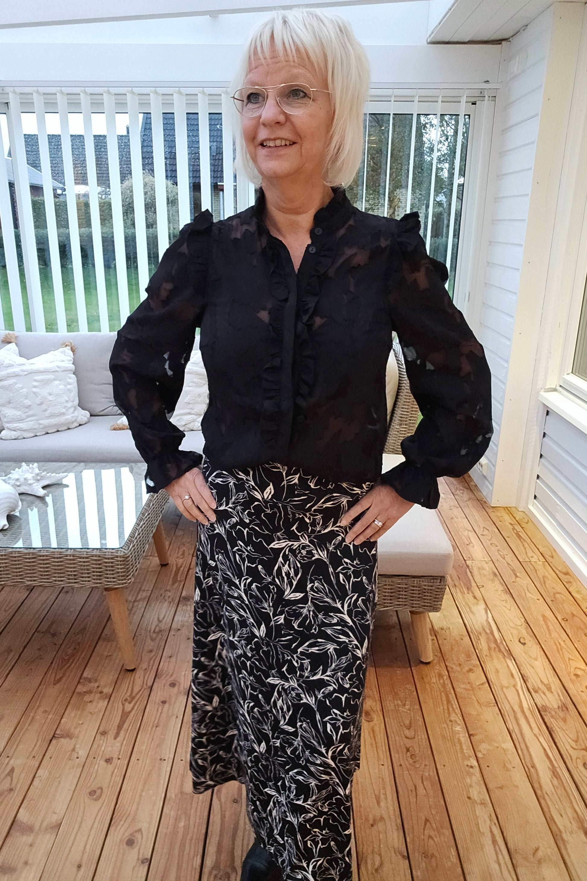 Mix&Match tips: Här har vi satt till Vya kjolen med vitt blom mönster som blir en tuffare look. Till de en av våra svarta väskor som finns i olika storlekar. Du kan även välja en hel svart look och sätta till Lotta kjolen som blir en stilig look. Vill du bryta av det svarta, så kan du matcha till en beige Alva väska eller en brun Wilma väska till.
