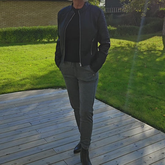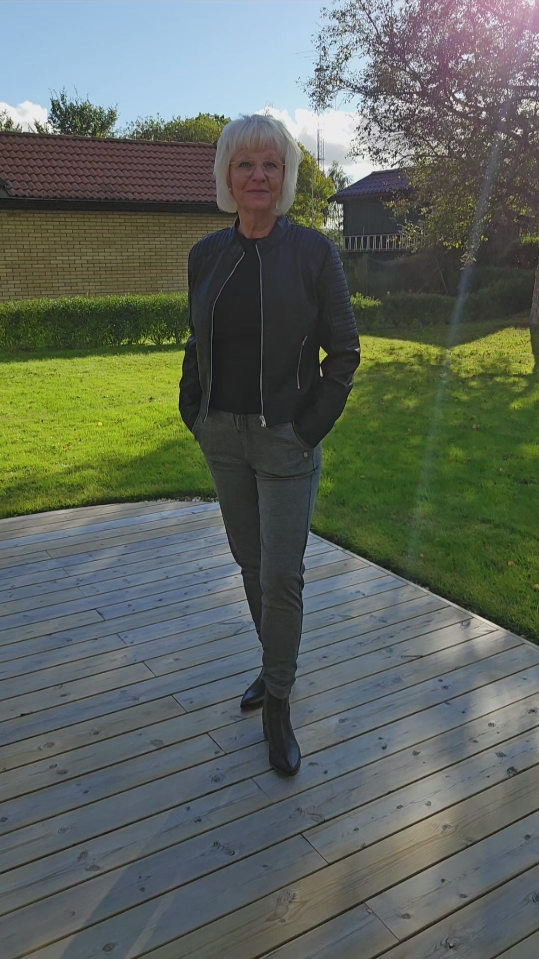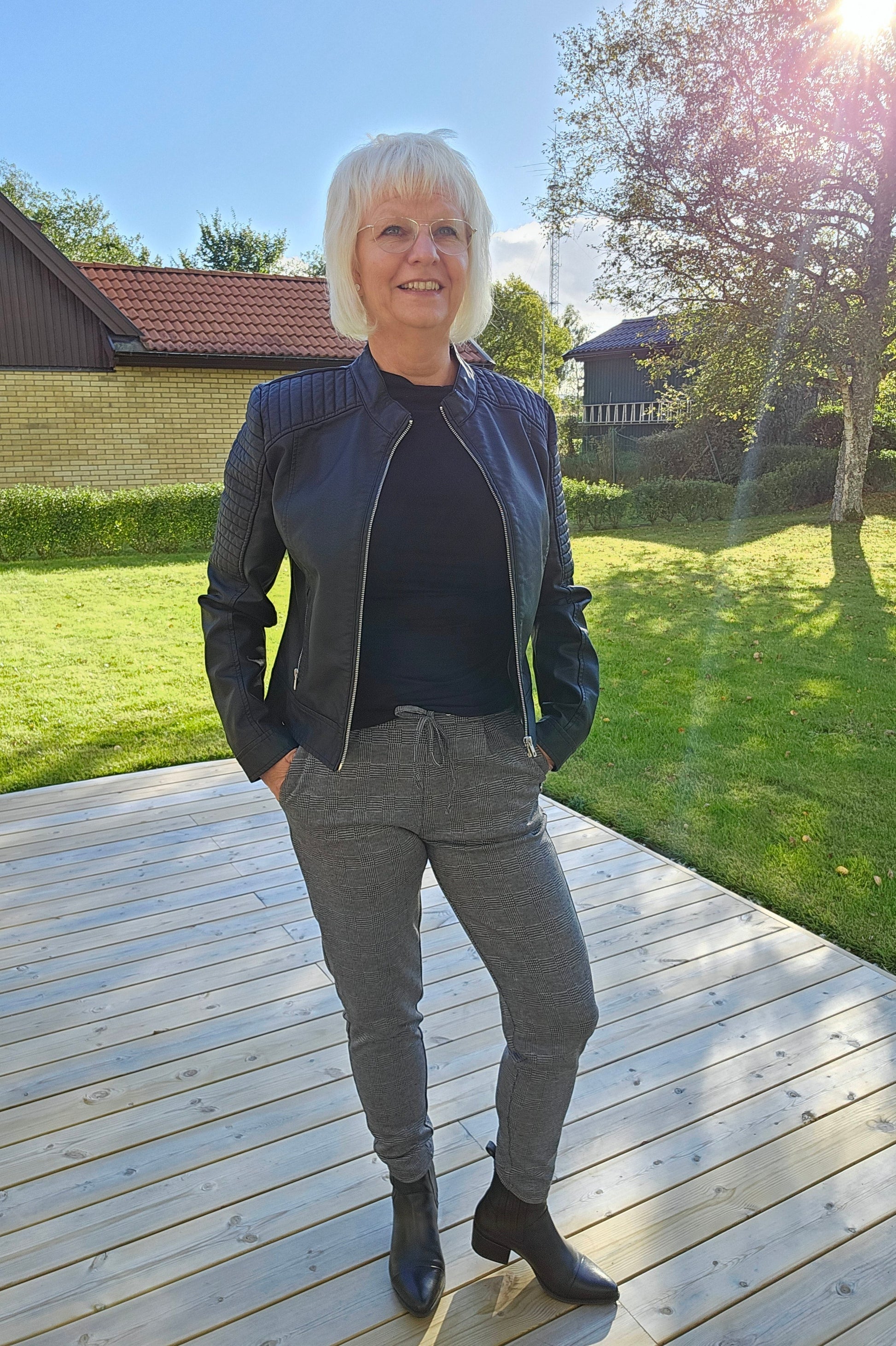Tips: Tufft till Sofia toppen utan ärm med drapering i sidorna och "skinnjackan" Duna som synes här på bild tillsammans med ett par stövletter. Val av väska där hade vi satt till svarta Wendy väska i äkta skinn.
