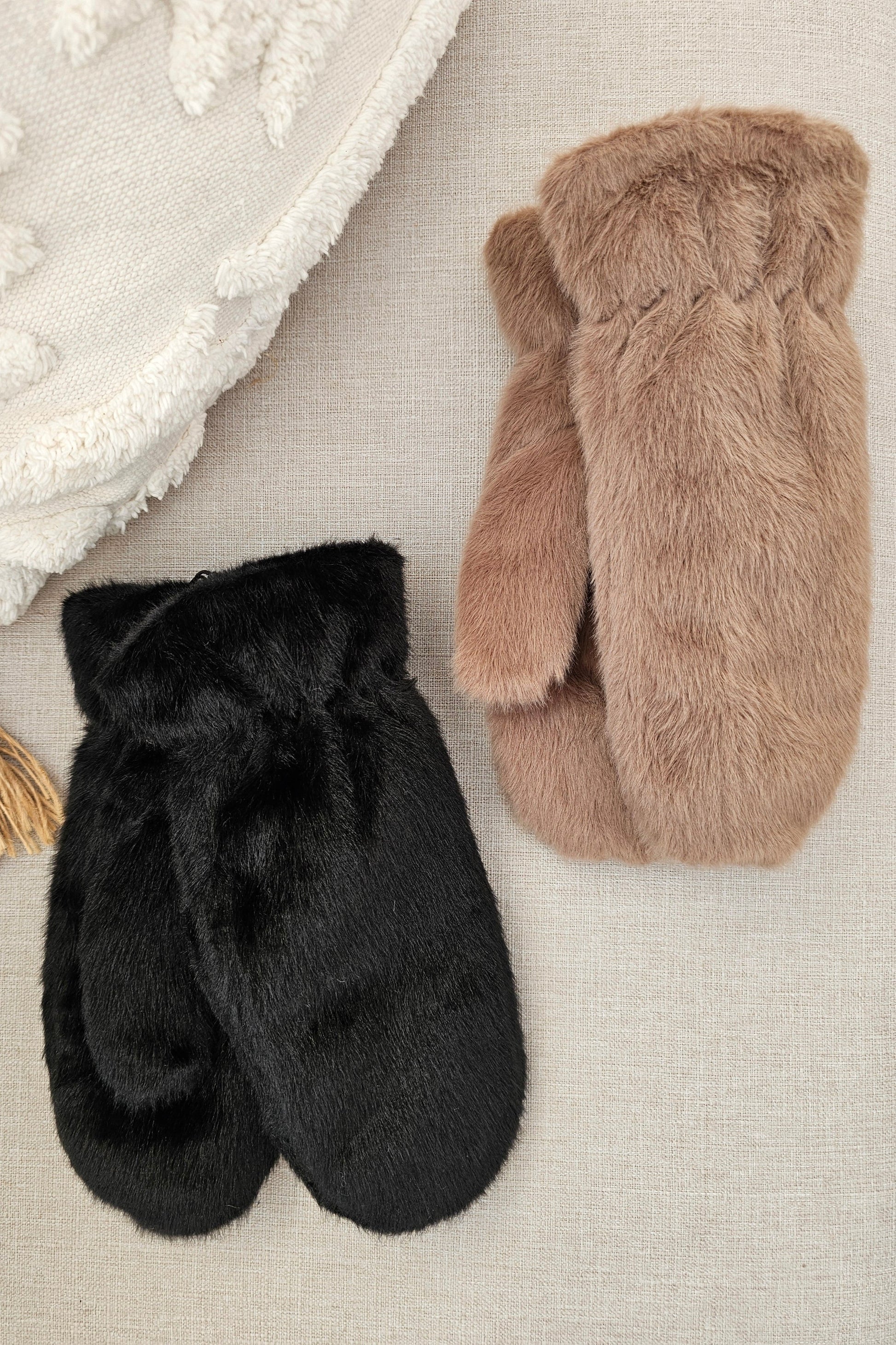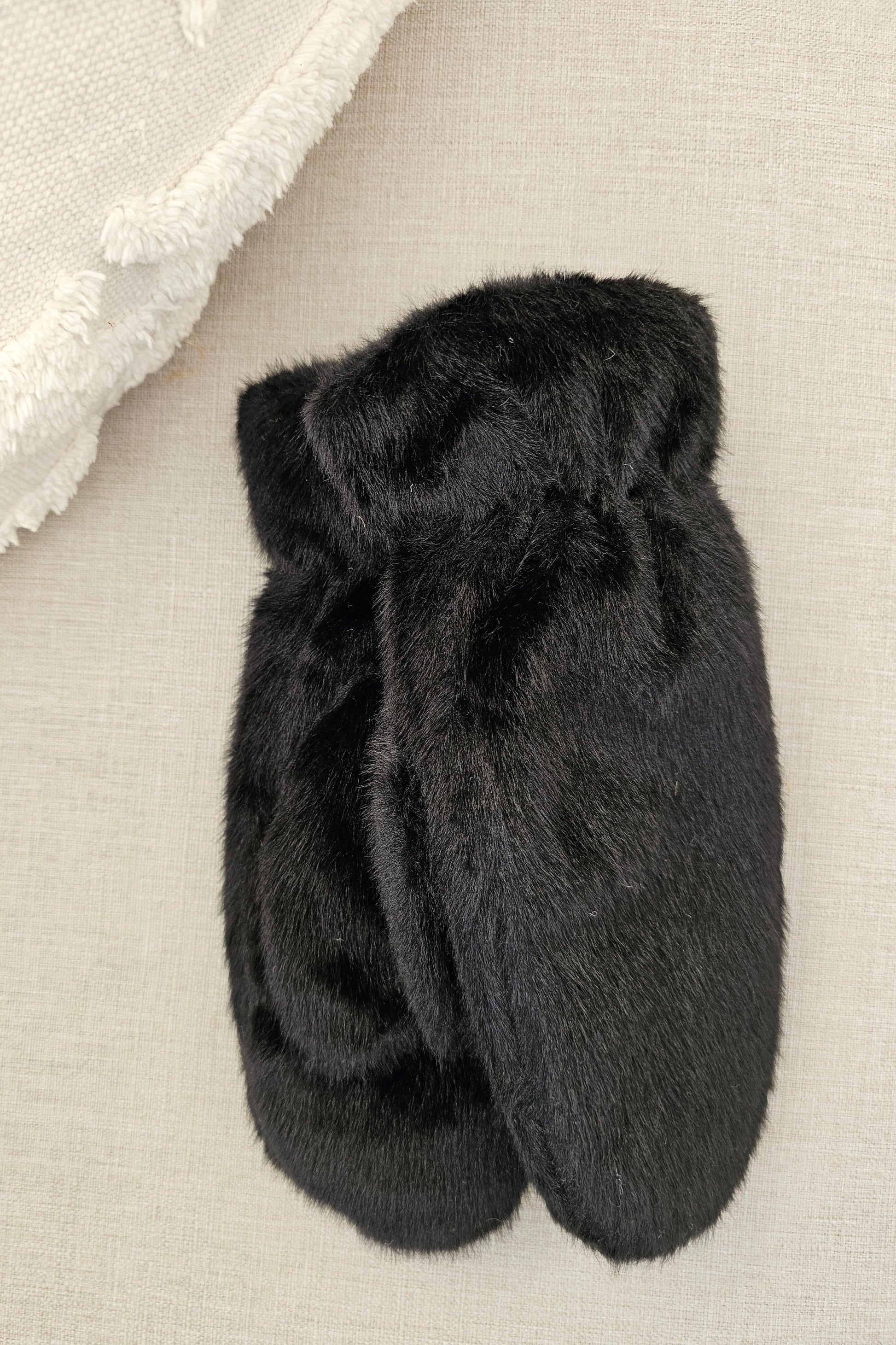 Produktbeskrivning: Svarta vantar i fuskpäls och tjockt gosigt foder