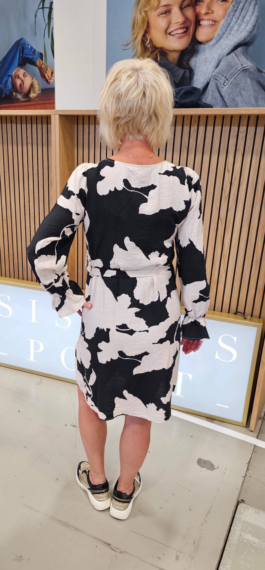 Tips: Denna klänning är ju precis en sådan som du kan göra hur mycket som helst med. Du kan matcha&mixa den exempelvis till kortare skinnjacka och ett par sneakers tillsammans med våra svarta väskor som vi har i olika storlekar så som väskan Alva, Wilma eller Wendy. När det blir kallare kan du matcha med en grov kofta, stövletter eller varför inte höga svarta stövlar. Du kan ju alltid ha den som den är och med en hög klack till. Supersnyggt.