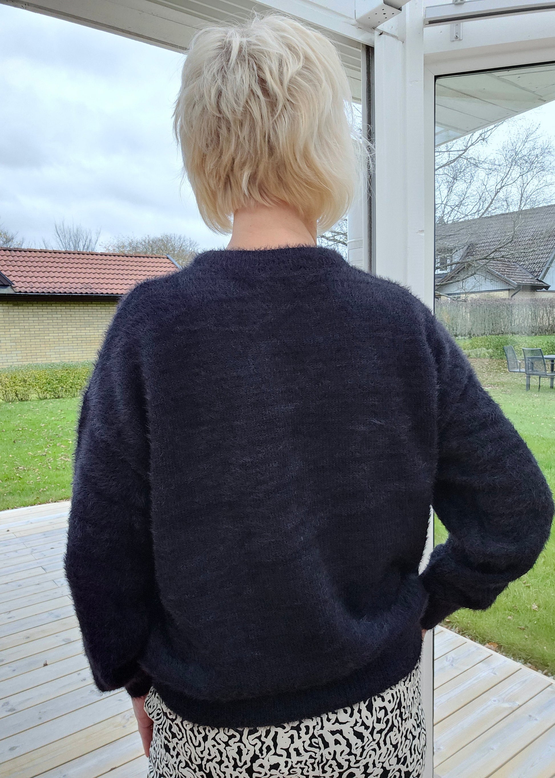 Produktbeskrivning: Otroligt mjuk och go stickad tröja i svart (riktigt svart om det inte syns på bilderna). Rundhals och lång ärm.