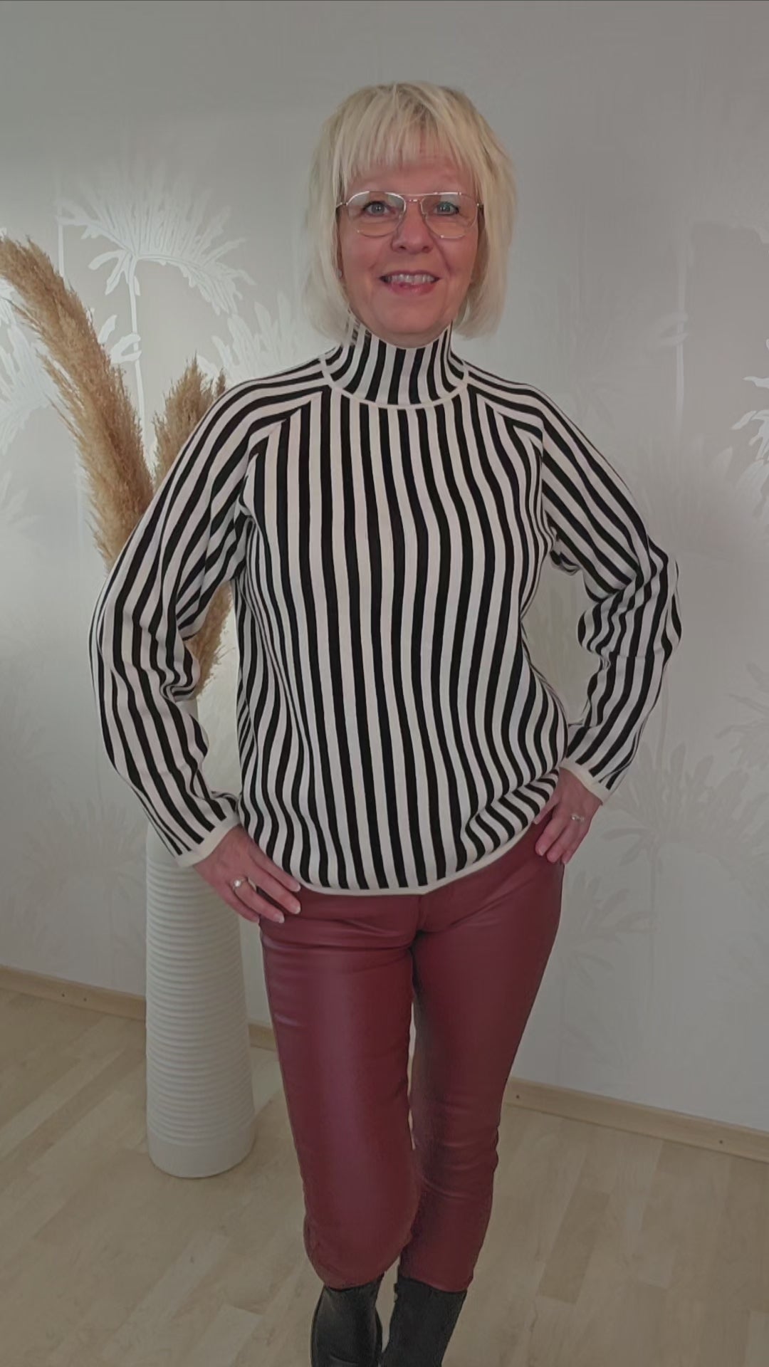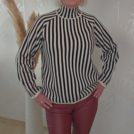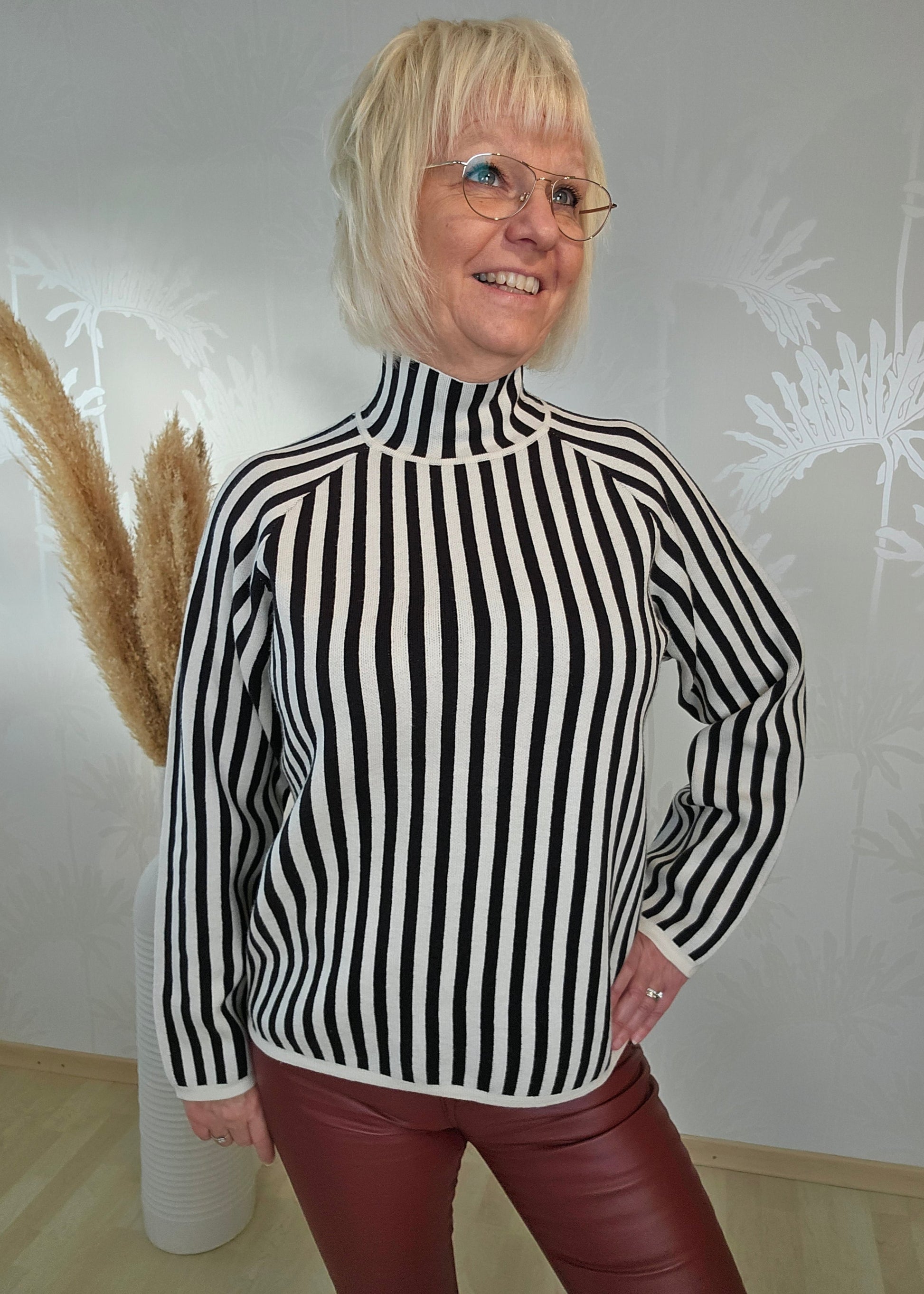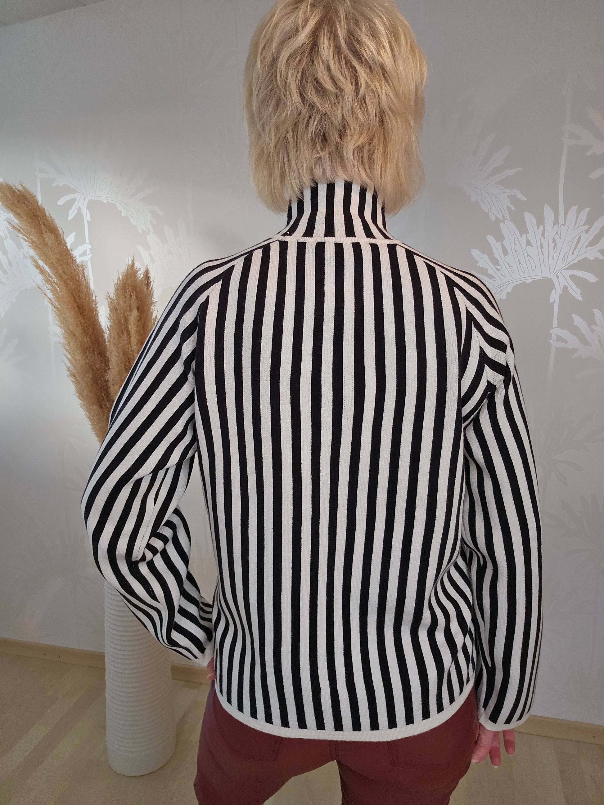 Produktbeskrivning: Randig svart och vit tröja med lång rak ärm och ståkrage