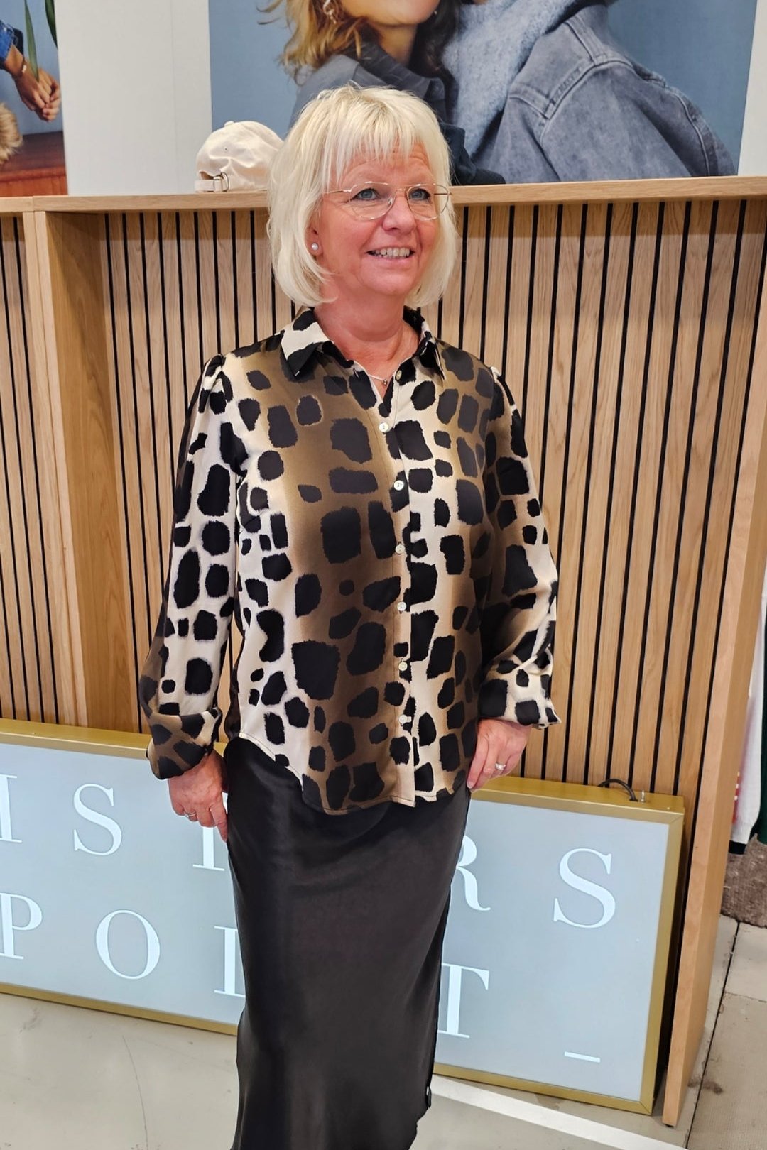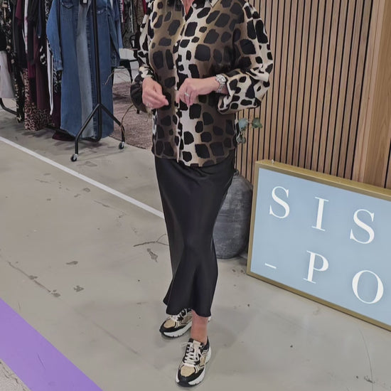Tips: Jättesnyggt med att sätta till både beige, svart, brunt och jeansfärgad underdel. Här har vi satt till vår Lotta kjol i svart. Snyggt eller hur. Väldigt användbar både till vardags eller när du vill vara fint klädd. Ett tips till är att du kan matcha denna skjortblus under en beige cardigan med trekvarts ärm som vi har som heter Sbcarly knit till höst och vinter när det är lite kallare. Vi har även en lite större väska som heter Alva i beige, brunt och svart som passar perfekt till denna blus. Vill du ha en mindre väska till så finns både Wendy axelväskan i svart och Wilma lite mindre väskan i brunt eller svart som också går i samma toner som denna ur snygga skjortblus.