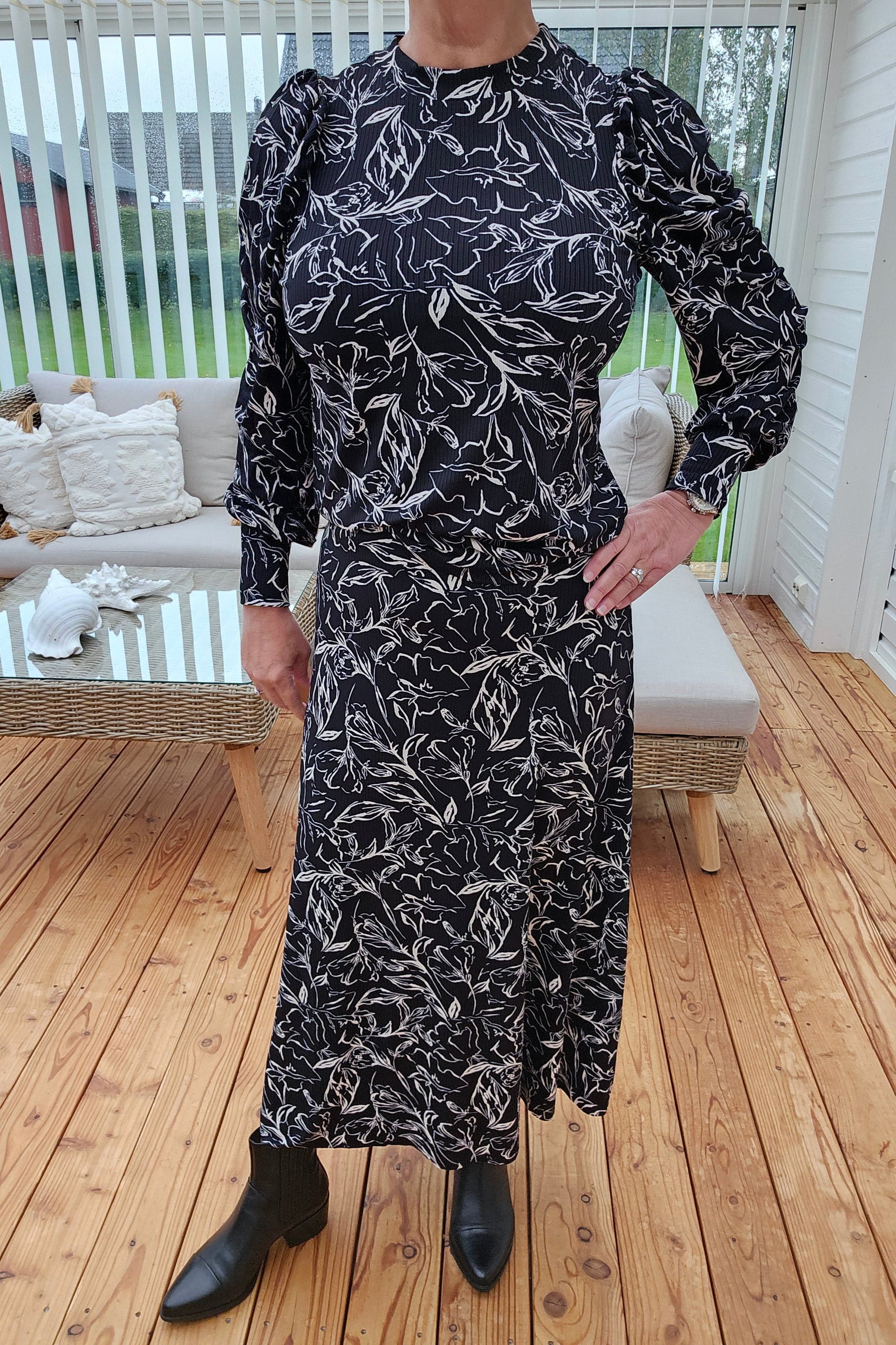 Mix&match tips: Sätt till Vya Black Flower toppen i samma tyg som kjolen och få ett helt set. Ett annat tips är att matcha med Holly tröjan i svart eller Sofia toppen i svart är också väldigt snyggt till. Utan på de kan du ha Duna jackan i svart eller vår Sienna jacka i beigt. Ett par sneakers/stövletter eller stövlar till utifrån väder och vardag eller fest. Våra väskor i svart passar också till vilken som Alva, Wilma eller Wendy. Vilken gillar du bäst?