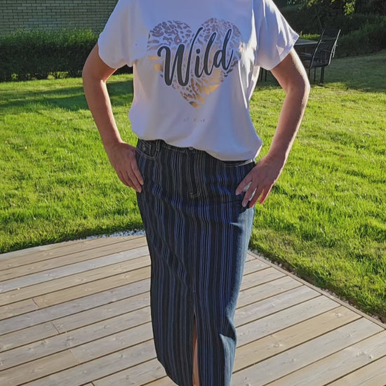 Produktbeskrivning: Vit t-shirt med texten "Wild" i grått. Med guldfärgat mönster i hjärtform