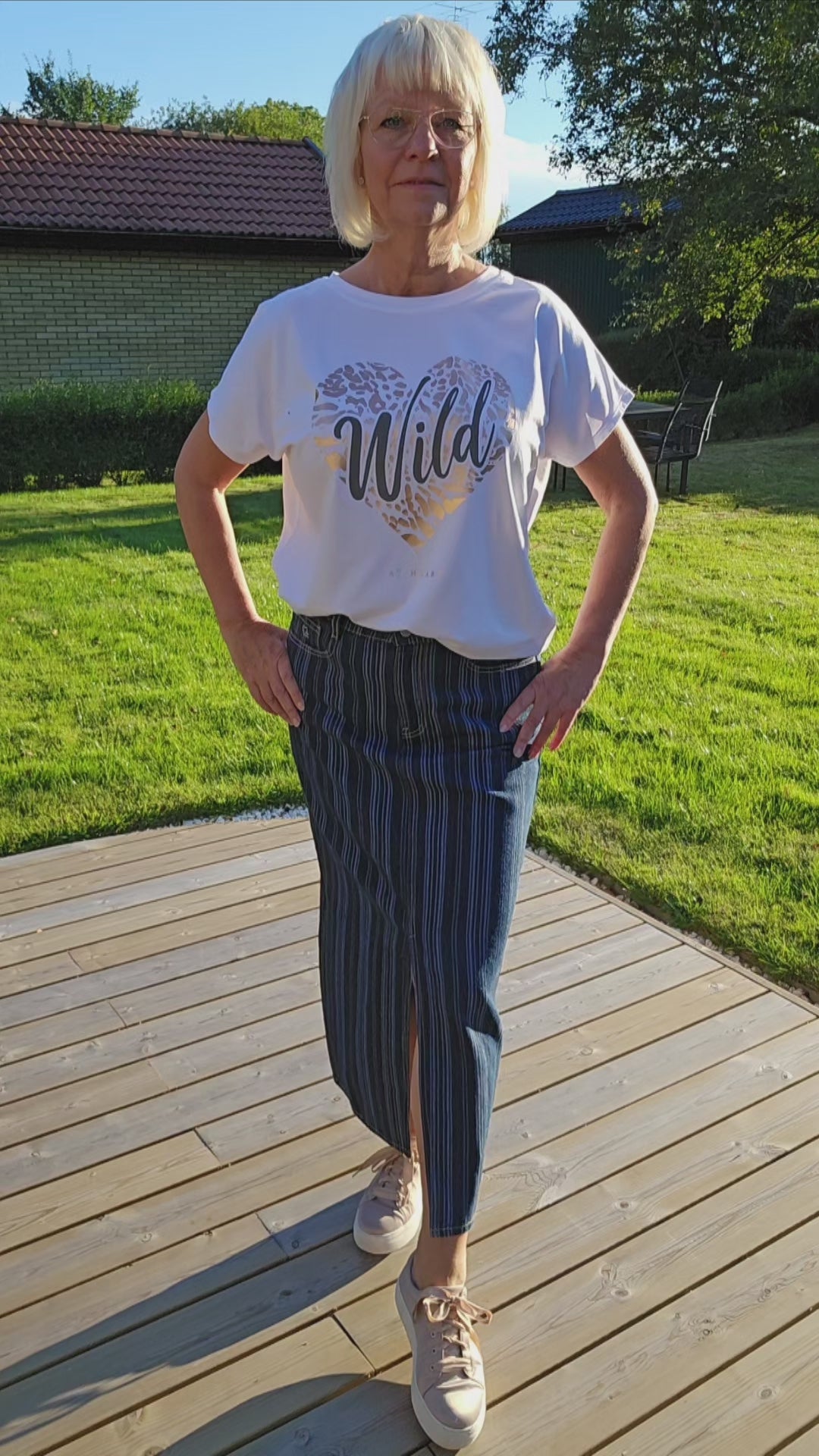 Tips: Match&Mix tipset här är denna vita "Wild" T-shirten tillsammans med Alicia skjortjackan, Alicia kjolen och ett par sneakers. Matcha med vår Alva väska i beige eller brunt om du vill ha en lite större väska eller vår bruna väska Wilma, vilket blir pricken över i:et.