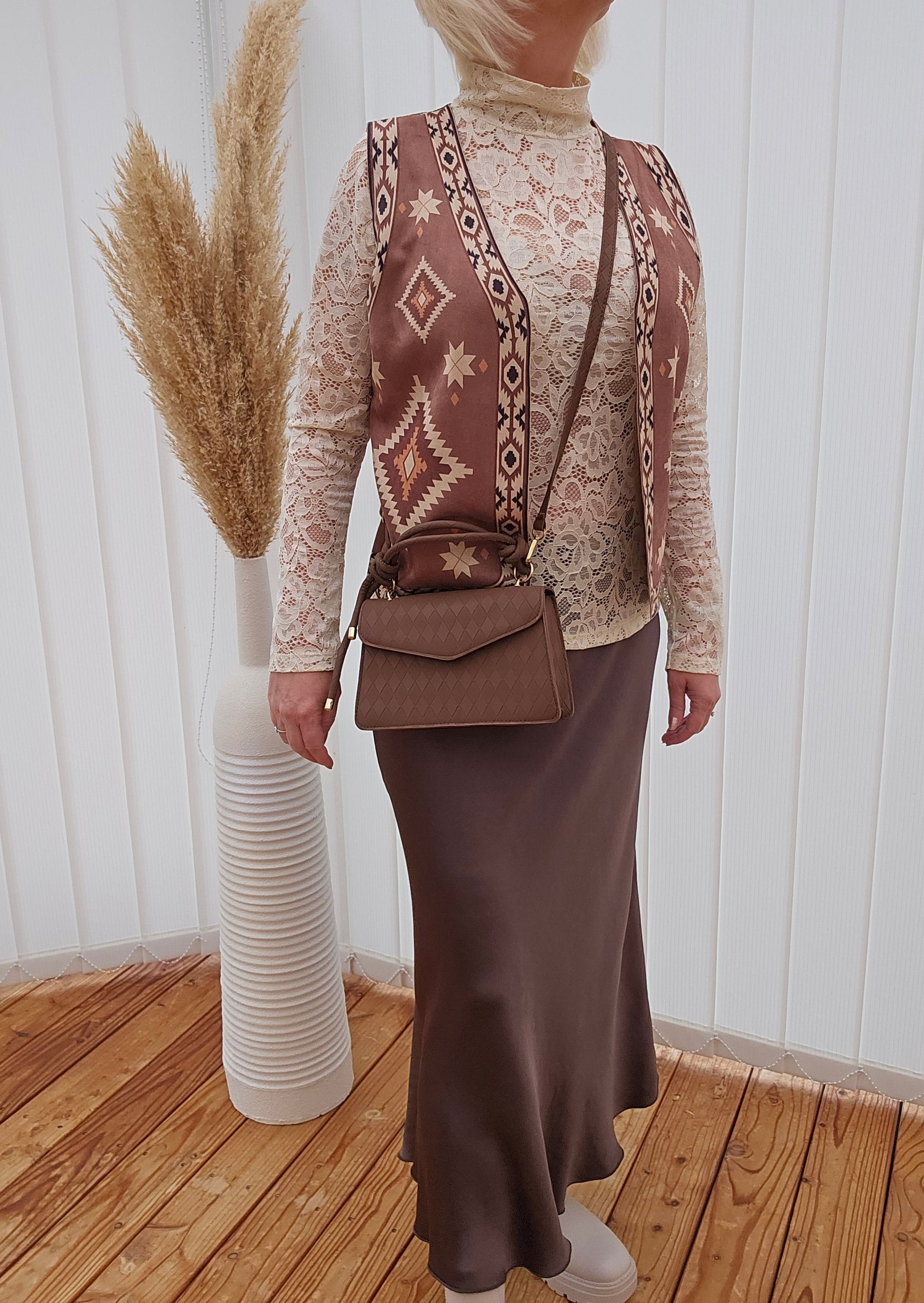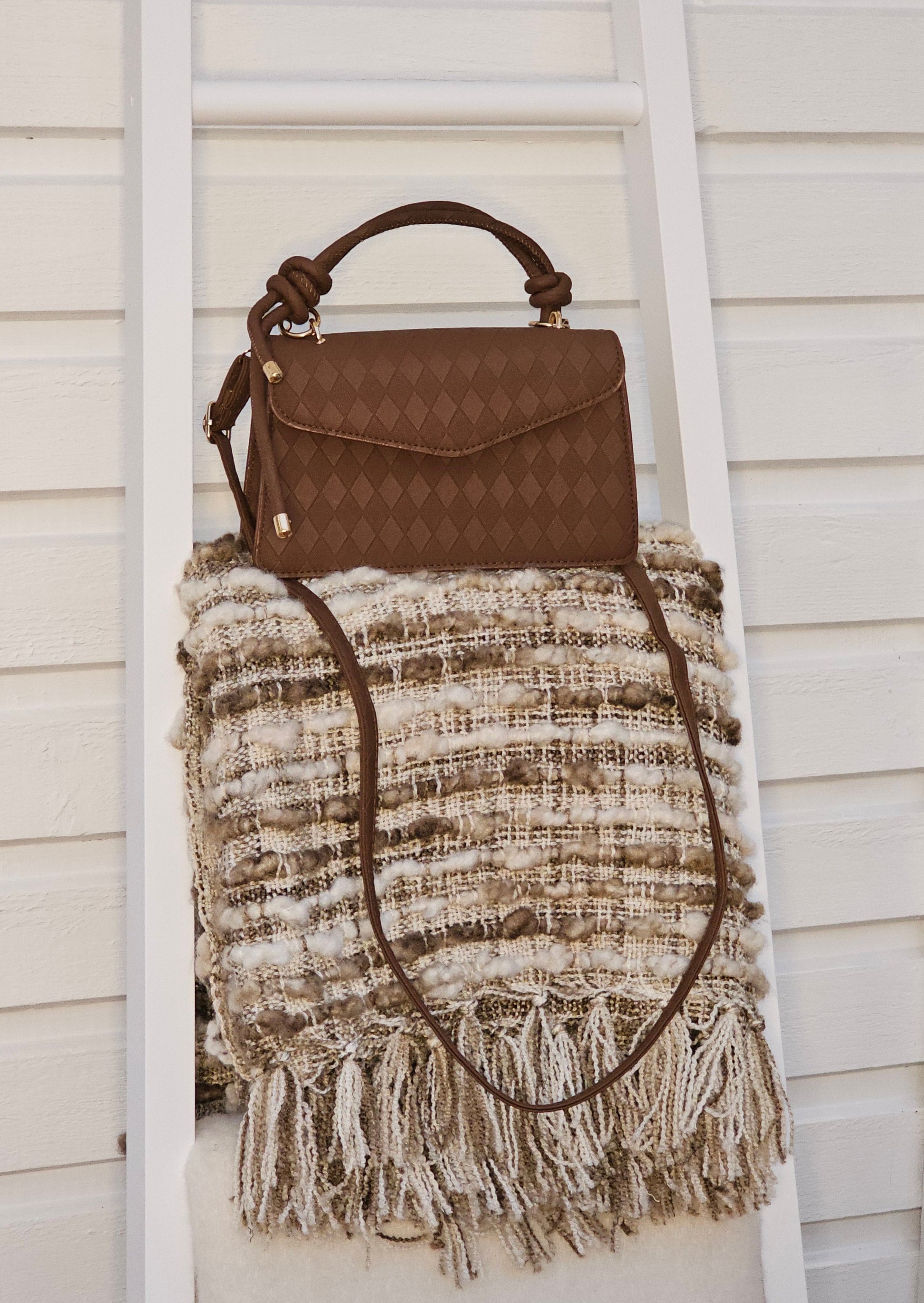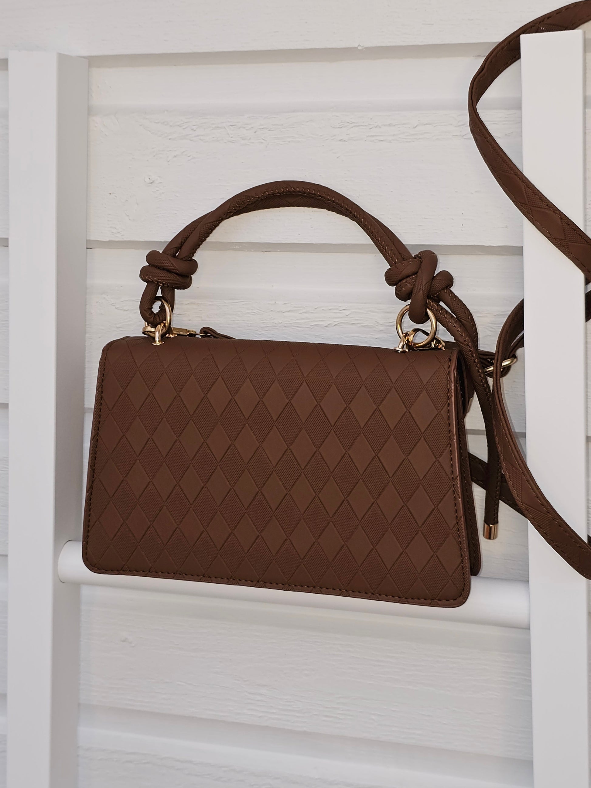 Produktbeskrivning: Brun mindre axelväska där du får plats med din stora mobil och även lite annat smått och gott som ska med i tjejväskan.
